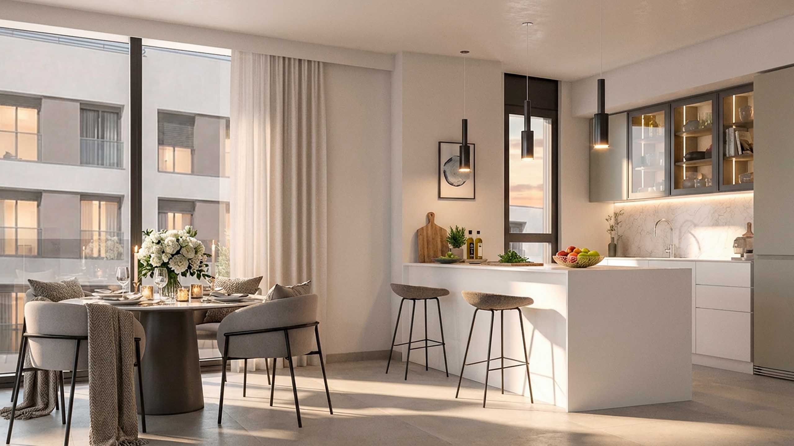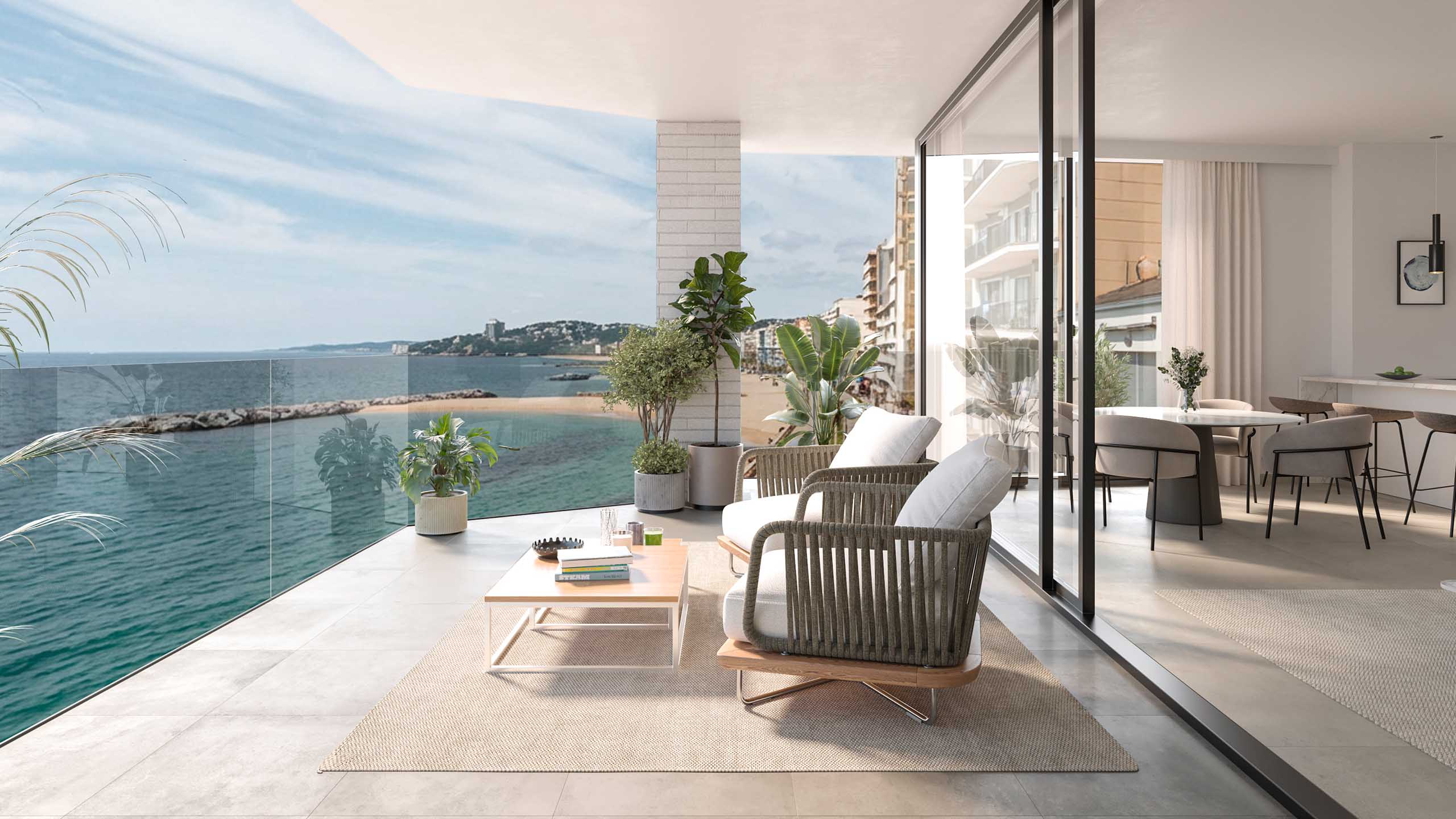 Cada vivienda se abre al exterior a través de amplias terrazas privadas, espacios diáfanos y funcionales bañados por la luz del Mediterráneo que se convierten en una extensión del salón con vistas directas al mar.